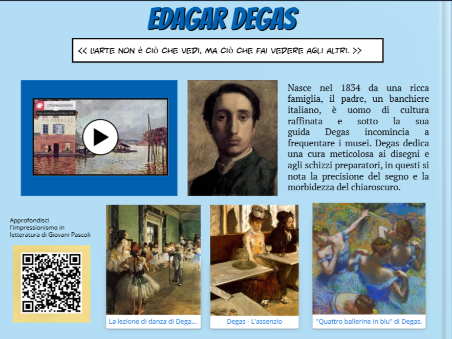 Il modulo ha previsto la creazione di vari compendi didattici multimediali (CDM) con il programma BOOK CREATOR riguardo a temi della Storia dell’Arte tra Ottocento e Novecento.